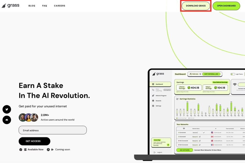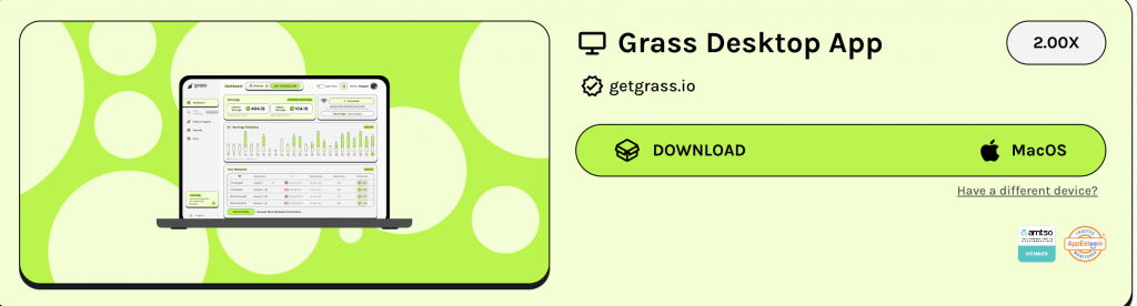 Download Grass desktop app (doble reward) for your os mac windows or linux. At the moment of writing 10 may 2025 chrome extension is deprecated.